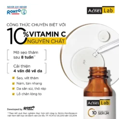 Sau nhiều năm nỗ lực nghiên cứu, Công ty Rohto-Mentholatum đã thành công trong việc tạo ra Serum Vitamin C dưỡng trắng làm mờ sẹo thâm ACNES C10 với hàm lượng Vitamin C nguyên chất 10%, ổn định và thấm tốt qua da, không dầu, không chất bảo quản. Việc cung cấp Vitamin C nguyên chất mỗi ngày cho làn da là bí quyết để sở hữu một làn da trẻ đẹp.