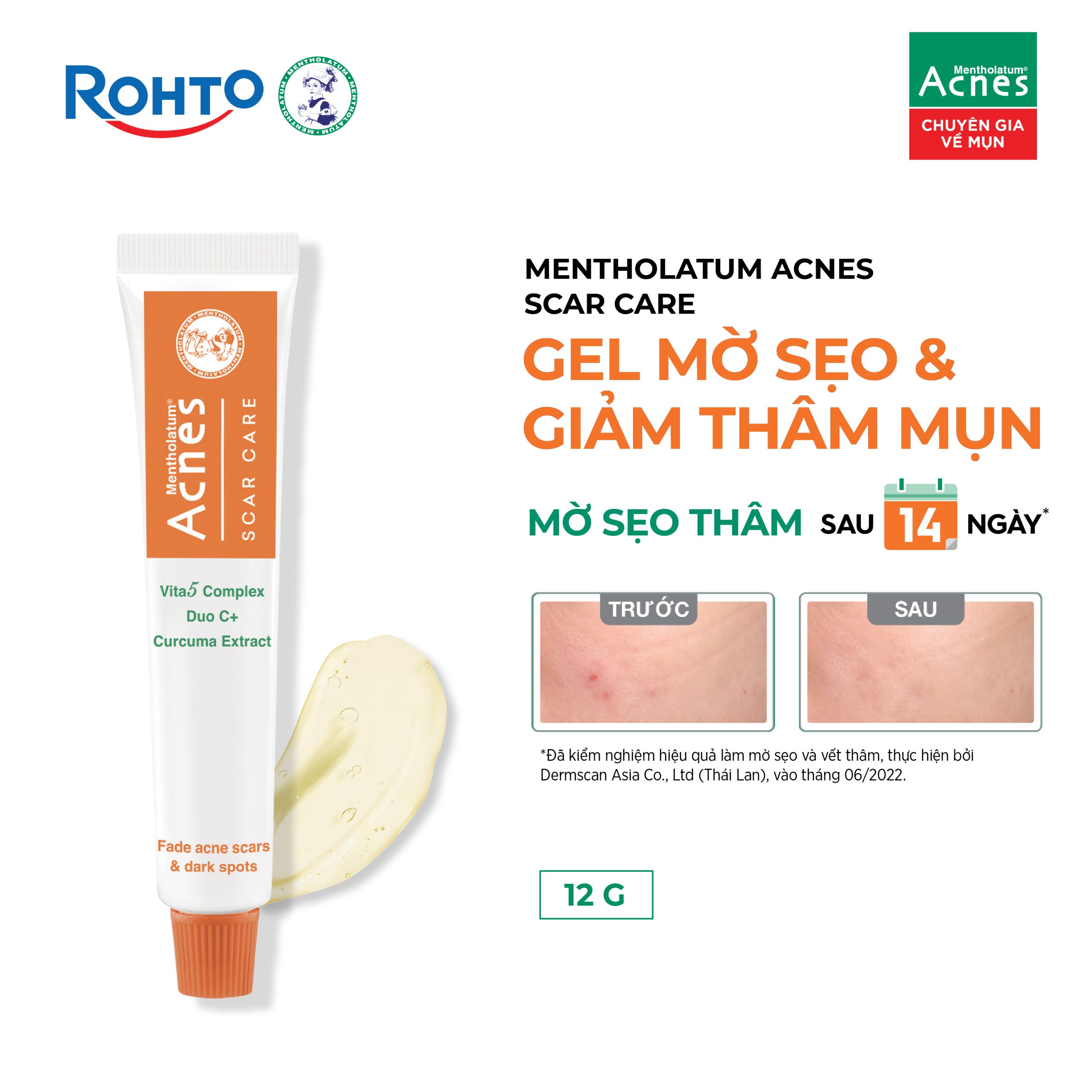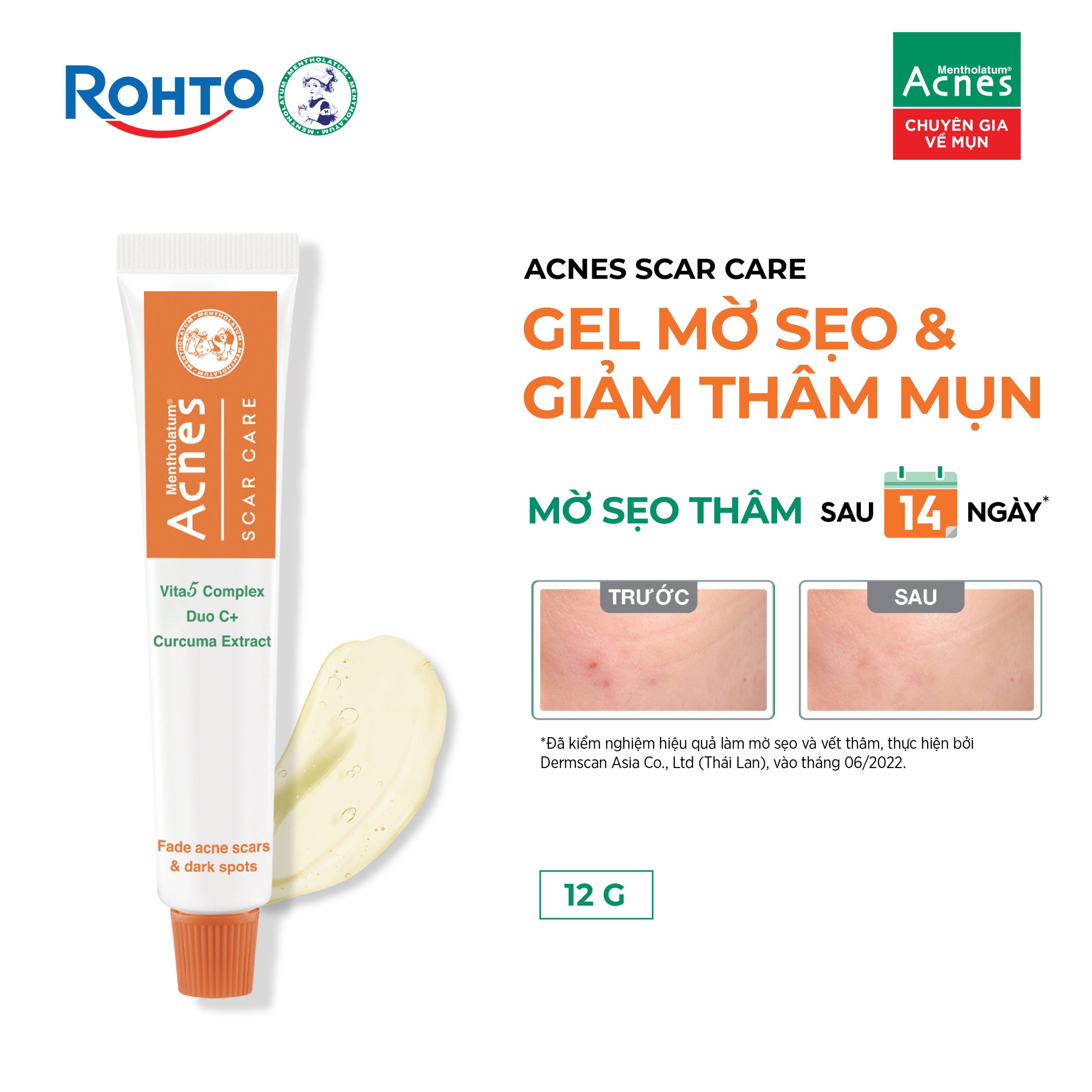 Kem trị thâm – gel trị thâm mụn Acnes Scar Care với công thức cải tiến, tối ưu hóa phức hợp Vitamin và Tinh chất nghệ giúp làm mờ sẹo, giảm nhanh thâm mụn, đồng thời ngăn hình thành mụn mới.