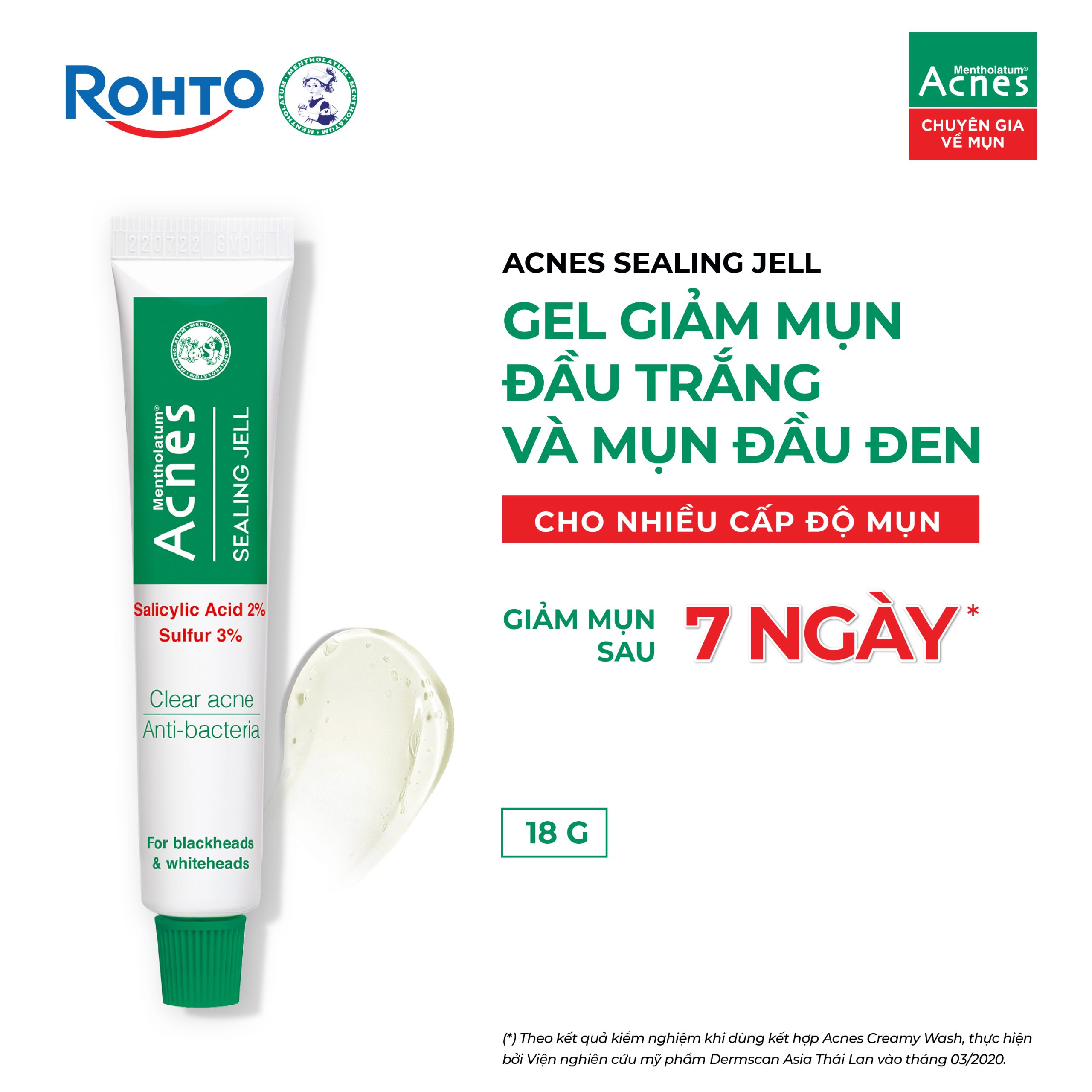 (*) Theo kết quả kiểm nghiệm khi dùng kết hợp Acnes Creamy Wash, thực hiện bởi trung tâm kiểm nghiệm tại Thái Lan vào tháng 03/2020.