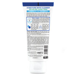 Acnes Whitening+ Cleanser – Sữa rửa mặt dưỡng trắng, kiểm soát nhờn, ngừa mụn thế hệ mới với cơ chế dưỡng trắng thông minh, sử dụng công nghệ Melta-Detectiv Drone chủ động đưa Peptide X50 Pure White di chuyển đến đúng vị trí hình thành melanin nhờ tín hiệu đặc biệt, từ đó giúp giảm sự hình thành melanin, dưỡng trắng và làm đều màu da. Sữa rửa mặt dưỡng trắng bổ sung Hyaluronic Acid giúp cung cấp độ ẩm khi rửa mặt và Isopropylmethylphenol giúp kháng khuẩn, ngăn ngừa mụn.