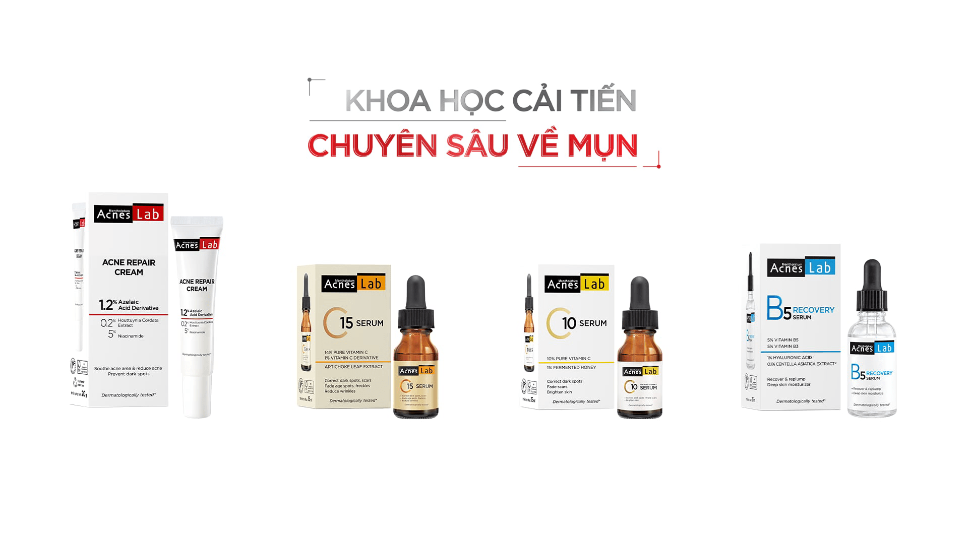 Tại Acnes LAB, chúng tôi hướng đến sứ mệnh giúp bạn sở hữu làn da khỏe đẹp của chính mình. Trải qua quá trình lựa chọn, thử nghiệm nghiêm ngặt, Acnes LAB mang đến sự kết hợp tối ưu của từng thành phần hoạt tính và chiết xuất tự nhiên, tạo ra các sản phẩm thực sự hiệu quả – lành tính cho da.